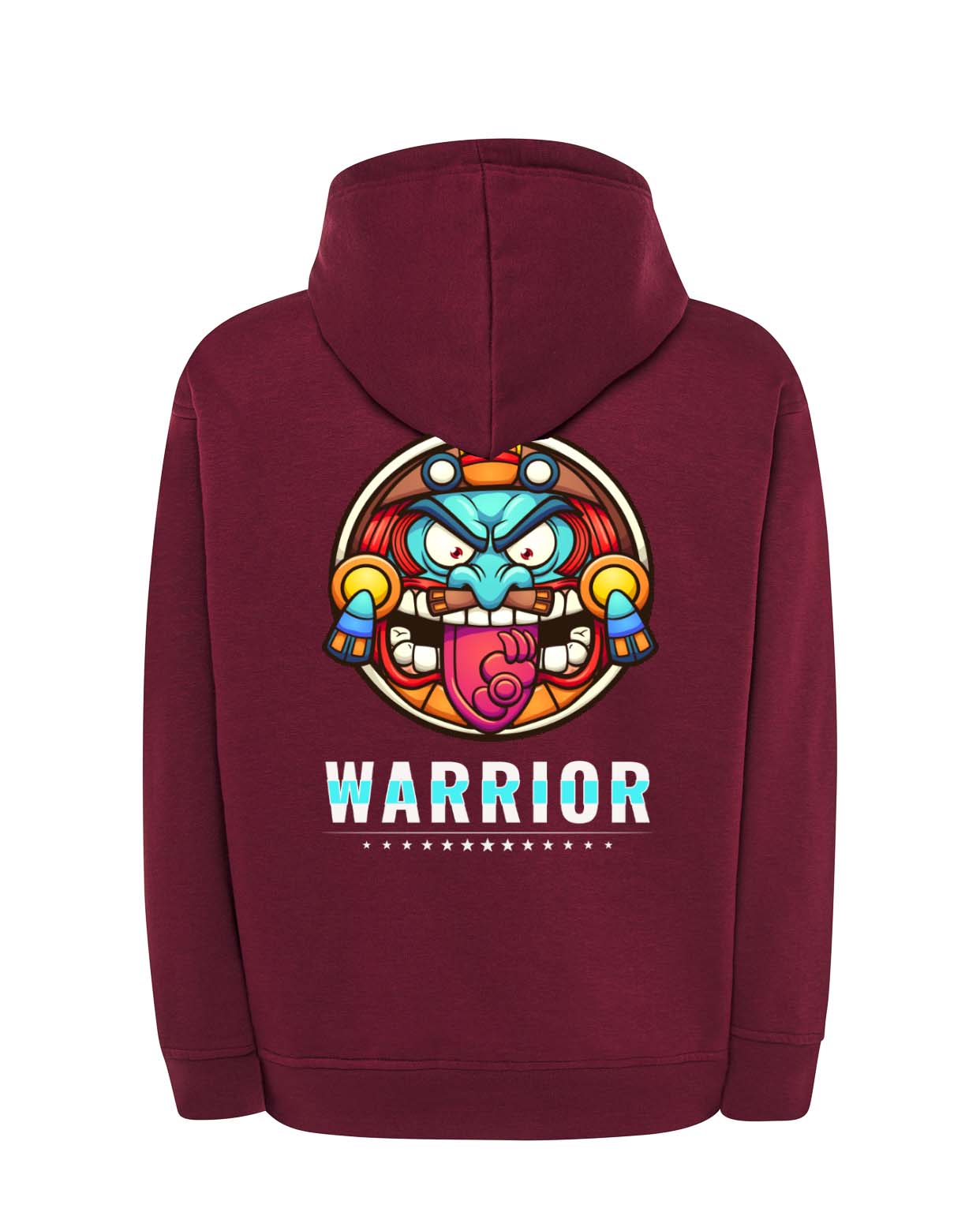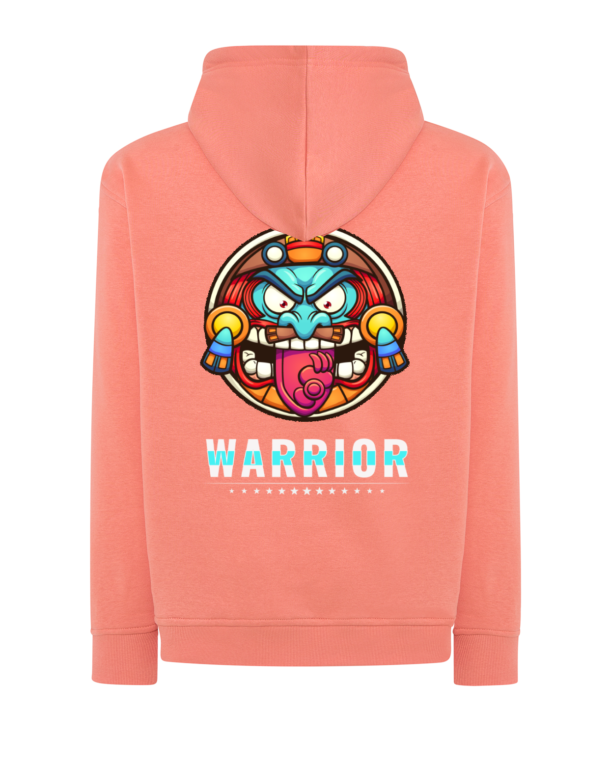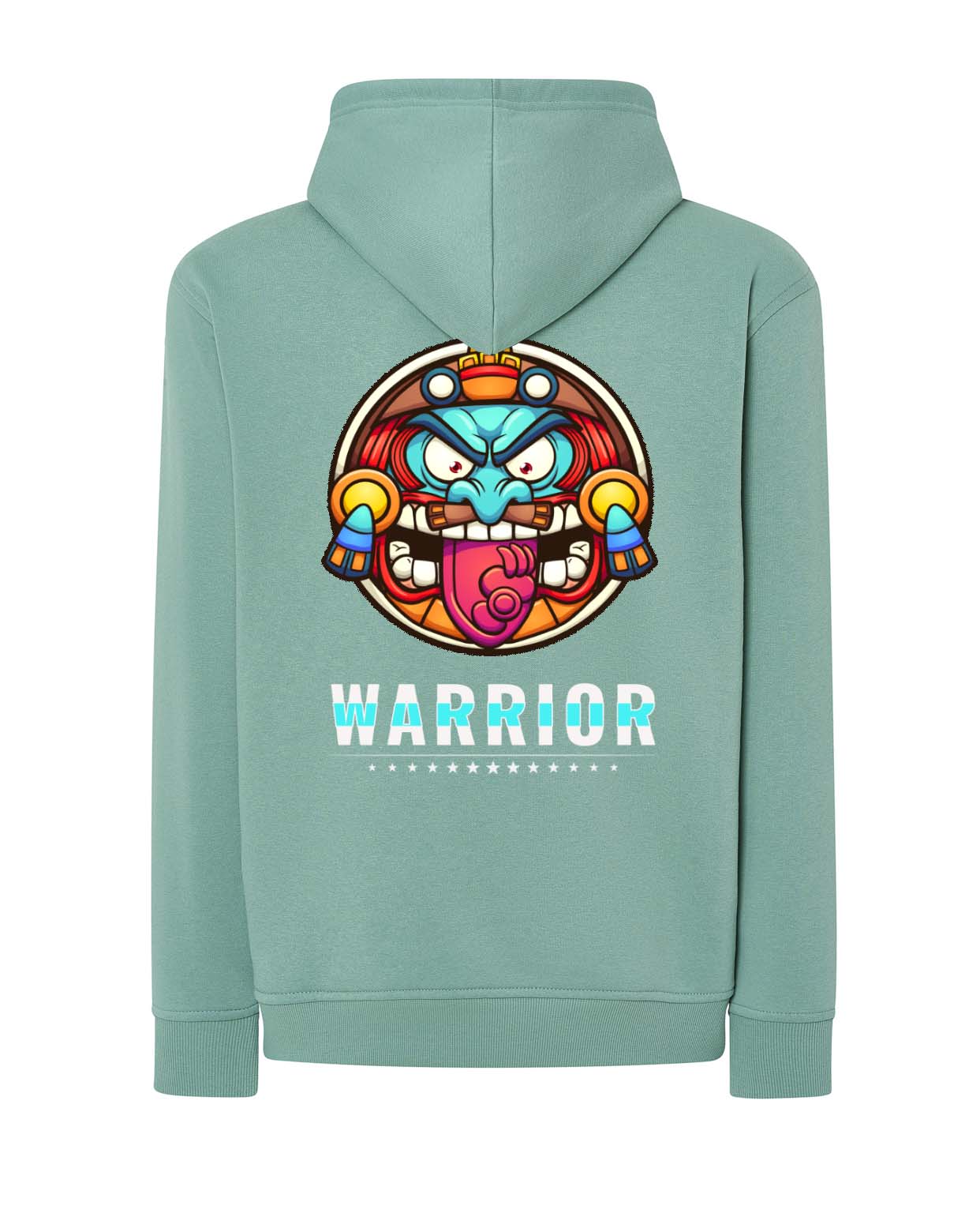Una prenda que transmite fuerza, energía y estilo. Esta sudadera con capucha en negro destaca por su diseño gráfico vibrante en la espalda: un rostro guerrero con colores intensos y mirada desafiante, acompañado del mensaje “WARRIOR” y una fila de estrellas. Perfecta para jóvenes que se sienten únicos, valientes y con actitud.